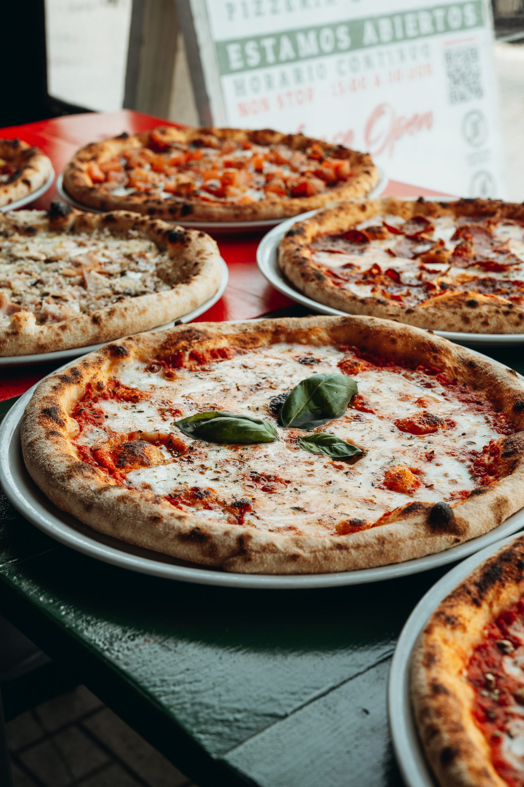 Pomodoro, basilico, mozzarella fiordilatte, capperi, acciughe selezione 00 e olive nere Gaeta.